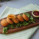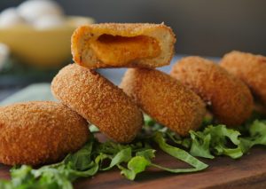 Coat in all-purpose flour then dip into beaten eggs and coat with breadcrumbs then shape into round shape (makes 24-25).