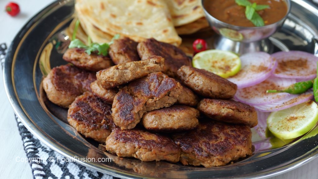 -In a large tray,add beef mince,chickpea flour,ground paste,raw papaya paste,pink salt,red chilli powder, garam masala powder,cardamom powder,mace powder,mix & knead well with the help of hands.