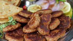 -Large tray mein beef qeema,chanay ka atta,ground paste,kacha papita paste,pink salt,lal mirch powder,garam masala powder,elaichi powder aur javitri powder dal dein aur haath ki madad sa ache tarhan mix aur knead ker lein.