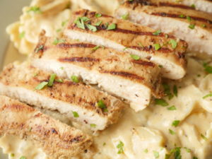 -Sprinkle tuscan seasoning on both sides of chicken fillets & rub evenly (reserve 1 tbs for later use).