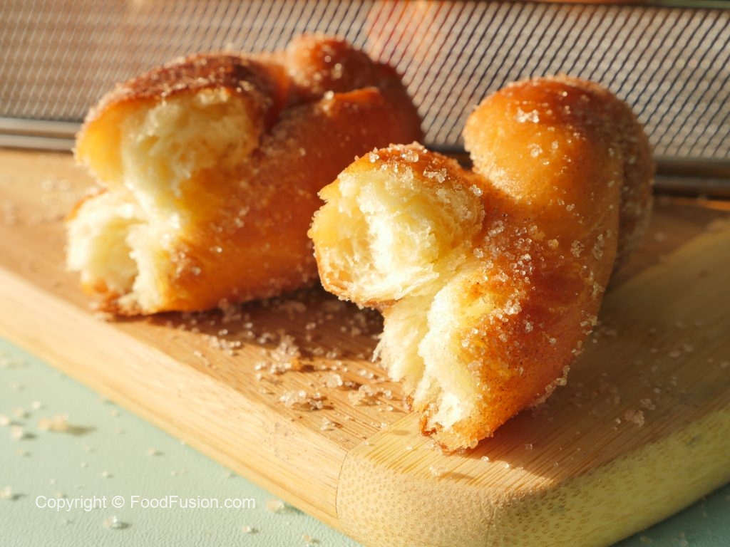 Twisted donuts ko cheeni+darchini ka mixture mein dal ker ache tarhan coat ker lein.