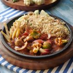 Makhan dal ker pheela lein,band gobhi leaves rakh ker upper sa fried rice,potato fried,stir-fried vegetables aur tayyar shashlik sauce dal ker serve karein!