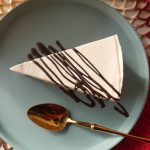 Cheesecake ko melted dark chocolate aur chocolate button sa decorate ker len desired slices mein cut ker ka serve karein!